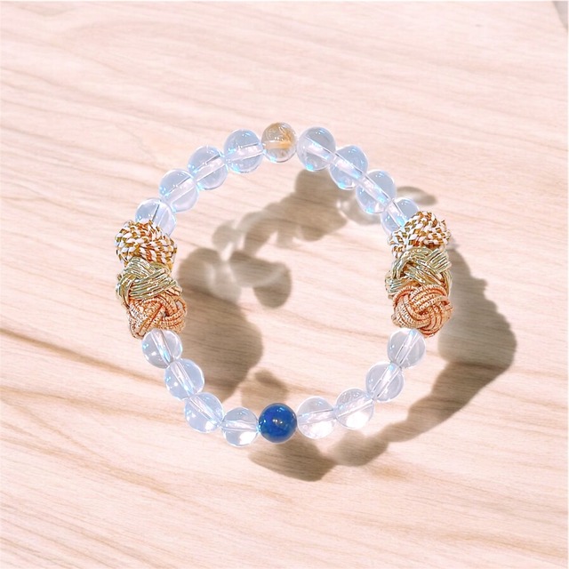 大黒天の招福お守りブレスレットは、古くから福の神として親しまれている大黒天の御加護を宿しています。 中心に配されたクリスタルは、あらゆるものを浄化し、潜在能力を引き出すと信じられています。そして、願いを結び、ご縁を繋ぐ水引は、あなたの想いを大黒天へと届け、確かな絆を築き上げます。 このお守りを身につけるたびに、大黒天の持つ五穀豊穣、商売繁盛、子孫繁栄、開運招福、そして厄除けの大きな力が、あなたの毎日を豊かに彩るでしょう。 ルチルクォーツ、シトリン、タイガーアイ、クリスタルのクリアな輝きはあなたの心を清め、水引の結びは良きご縁を引き寄せます。 あなたの願いが叶い、幸運が舞い込むことを心より祈りをこめておつくりしました。 ○ルチルクォーツの効果 ・金運、財運を呼び込むとされ、ビジネスの成功、投資運アップ、思わぬ収入など、財運全般に良い影響を与えるとされています。 ・仕事運、目標達成のサポートをし、決断力や行動力を強化し、目標達成を力強くサポートするとされています。 ・現実化をスピーディーにサポートします。 スピリチュアルな世界でよくいわれている、あらゆるレベルにおいての「統合」を果たす力があります。 ゴールドルチルは、金の針が入っていることが特徴です。これは、宇宙の光を完璧なバランスで宿しており、魂のために光を照らし、霊的成長を促進するといわれています。 ○シトリンの効果 ・豊かさを象徴し、富や繁栄、成功、すべての良きことを現実化させ、引き寄せる方法を教えてくれます。 ・富の維持を助けます。 ・強力な浄化作用と再生作用があります。 ・人生のあらゆるレベルを活性化させます。 ・自尊心と自信を高めます。 ・新しい経験を楽しめるようにしてくれます。 ・グループ、家族間の不和を解消します。 シトリンは、幸福への希望を与えてくれる石で、憂鬱な気分や否定的なエネルギーを解消し、生きる喜びを見出し、物事を楽観的に見られるように促してくれます。 ○タイガーアイの効果 ・保護作用のある石で、人の悪意や呪いから守ってくれます。 ・力の正しい使用法、意図の明晰さを促し、目標の完遂を助けます。 ・抑うつを軽減し、気分を高揚させます。 タイガーアイは、欲しいと思っている願望と本当に必要なものを区別して実現化させてくれる石です。浮いた気持ちがある時に地に足がつくように促してくれる力強さが特徴的です。 ○水晶(透明なクリスタル)の効果 ・地球上で最も強力な浄化作用と 癒し効果を持っています。 ・エネルギーを完璧な状態にします。 ・魂を深く浄化する働きがあります。 ・肉体を精神に結びつけてくれます。 ・あなたの霊的な目的へと同調させます。 ・瞑想にも有用で集中力を高めてくれます。 水晶は、邪気を祓い、心身や空間をクリアにするといわれていますが、一番の効果は、精神を純粋な状態に戻してくれることです。 ○水引き 大黒天様の豊かなご利益にあやかりたく、茶金、深緑、白の水引で心を込めて玉結びを作りました。茶金は金運招来、深緑は健康と成長、白は清らかな心と新たな始まりを意味します。この結びが、あなたの日々にたくさんの笑顔と福を運び、輝かしい未来へと導く道しるべとなりますようにとお結びしました。一粒万倍の願いを込めたこの玉結びが、あなたの努力が実り、幸運が舞い込むきっかけとなりますように。この先もずっと、大黒天様が見守ってくださいますように。 【詳細】 ・ルチルクォーツ10mm 原産国ブラジル ・シトリン8mm 原産国ブラジル ・タイガーアイ8mm原産国ブラジル ・水晶8mm 原産国ブラジル ・絹巻き水引き 茶金 深緑 白 【サイズ】 レディースサイズ 内径約16cm メンズサイズ 内径約18cm メンズサイズをご購入ご希望の方はオプションから選択してください。多少デザインが変更になります。