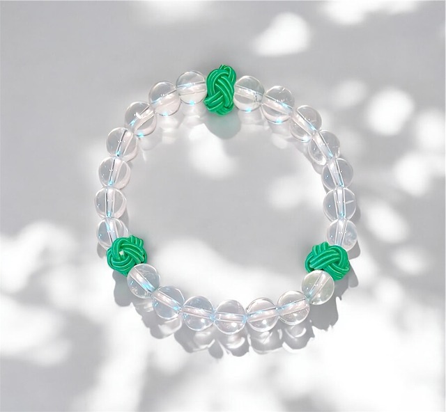 お守りブレスレット 日和・花萌黄(ひより・はなもえぎ) 「日和」とは、心も空も穏やかに整う、やさしい時間。 「花萌黄」は、春に芽吹く若葉のように、 新しい始まりと生命の力を象徴する日本の伝統色です。 透明な天然水晶に、 花萌黄色の水引を結び、 浄化と再生、調和と成長の祈りを込めました。 心が揺らぎやすいとき、 環境の変化の中にいるとき、 そっと身につけることで あなた本来のリズムを取り戻すお守りとして寄り添います。 日々の中に、穏やかな「日和」を。 あなたの内側に、静かに芽吹く力を。 アトリエ・ティナより、 祈りを込めてお届けするお守りブレスレットです。 ○水引と天然水晶のお守りブレスレット ― 浄化・守護・エネルギー調整 ― 手首に宿す、小さな祈り。 澄みきった天然水晶に、 願いを結ぶ水引を添えた アトリエ・ティナのオリジナルお守りブレスレットです。 水晶は、あらゆるエネルギーを浄化し、 心・身体・魂のバランスを整える もっとも基本であり、もっとも力強い守護石。 身につける人のエネルギーに共鳴しながら、 不要なものを静かに手放し、 本来の自分へと戻るサポートをしてくれるとされています。 アクセントとして結ばれた水引は、 日本古来より「縁結び」「魔除け」「願掛け」に用いられてきた 祈りの結び。 一つひとつ、想いを込めて丁寧に結んでいます。 シンプルでありながら、 手首に確かな守護と調和をもたらす お守りのようなブレスレットです。 ○天然水晶の意味 ・浄化、邪気払い ・エネルギーの調整、安定 ・直感力、潜在能力を高める ・他の石や持ち主の力を引き出す ・心身のバランスを整える ○ こんな方におすすめ ・気持ちをリセットしたい ・不安や迷いを手放したい ・人の影響を受けやすい ・新しい流れや変化を迎えたい ・お守り代わりのアクセサリーを身につけたい 日常の中で、そっと寄り添い、 あなたを守り、整え、導く存在として。 アトリエ・ティナから、 祈りを込めてお届けします。