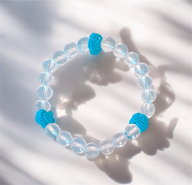 水引と天然水晶のお守りブレスレット 日和・花浅葱(ひより・はなあさぎ) ― 浄化・守護・心の静けさ ― 手首に宿す、澄んだ祈り。 澄みわたる天然水晶に、 花浅葱色の水引を結んだ アトリエ・ティナのオリジナルお守りブレスレットです。 「日和」とは、心も空も穏やかに整う、やさしい時間。 「花浅葱」は、清らかな水や空を思わせる日本の伝統色で、 心を静め、思考を澄ませる色とされています。 水晶は、すべてを浄化し、 心・身体・魂のエネルギーを整える 強力なヒーリングストーン。 外から受けた不要なエネルギーを払い、 本来の自分へと戻るサポートをしてくれるといわれています。 花浅葱色の水引には、 冷静さ、直感、真実を見抜く力、 そして心に静かな流れを取り戻す祈りを込めました。 ひとつひとつ、想いを込めて丁寧に結んでいます。 心がざわつくとき、 考えすぎてしまうとき、 人の感情や空気に影響を受けやすいときに。 身につけることで、 内側に静かな「日和」をもたらし、 あなたの中心軸をそっと整えるお守りです。 ○天然水晶の意味 ・浄化、邪気払い ・エネルギーの調整、安定 ・直感力、洞察力を高める ・心身のバランスを整える ・本来の自分に戻るサポート ○ こんな方におすすめ ・心を落ち着けたい ・考えすぎや不安を手放したい ・人混みや人の影響を受けやすい ・静かに自分と向き合いたい ・お守り代わりに身につけられるアクセサリーを探している 日々の中に、澄んだ静けさを。 あなたのそばで、そっと守り、整える存在として。 アトリエ・ティナより、 祈りを込めてお届けします。